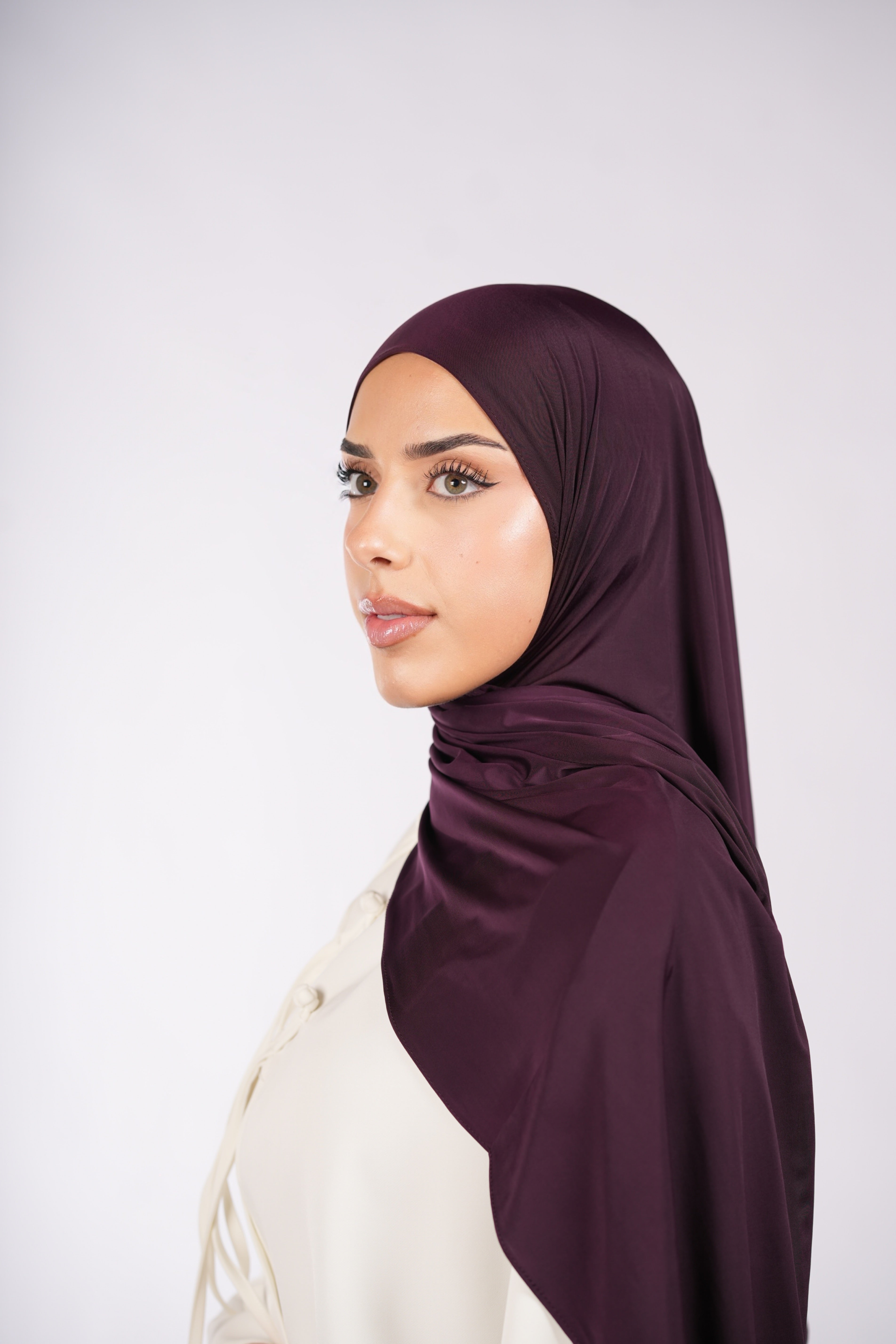 Notre hijab Liquid Jersey combine le meilleur du Jersey Premium Satiné et du Jersey Premium classique — élégant, légèrement brillant et en même temps très agréable à porter.