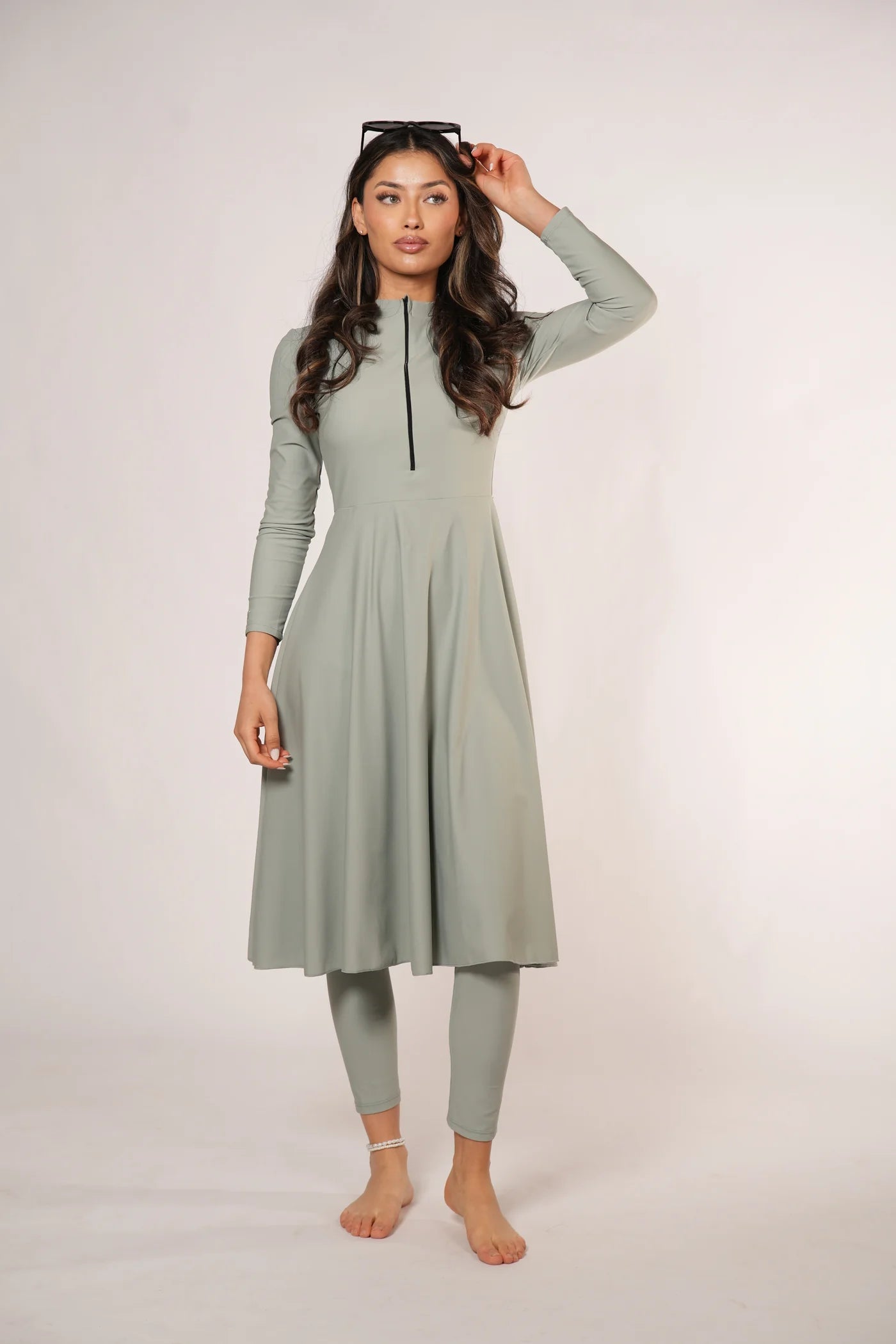 L'ensemble Azzurra allie fonctionnalité et raffinement féminin - parfait pour les journées ensoleillées à la mer ou à la piscine. Fabriqué dans un mélange de matières de haute qualité à séchage rapide, ce burkini deux pièces offre un maximum de confort tout en conservant une silhouette stylée.